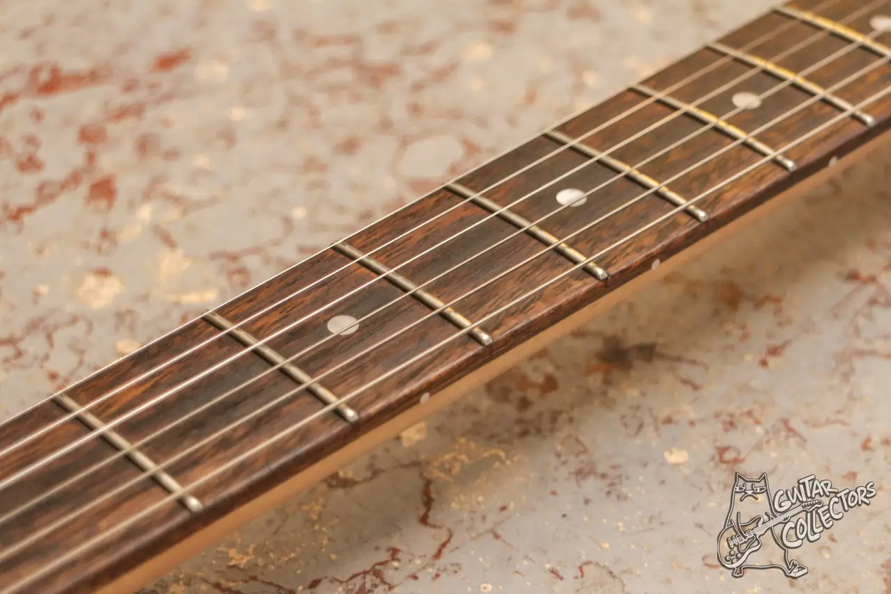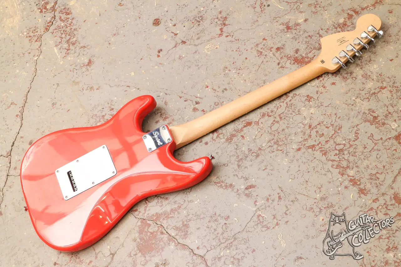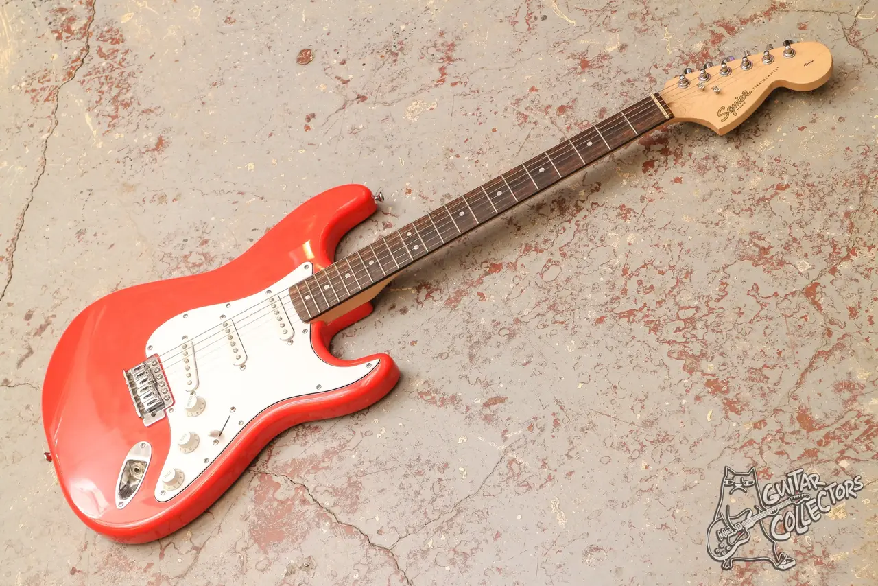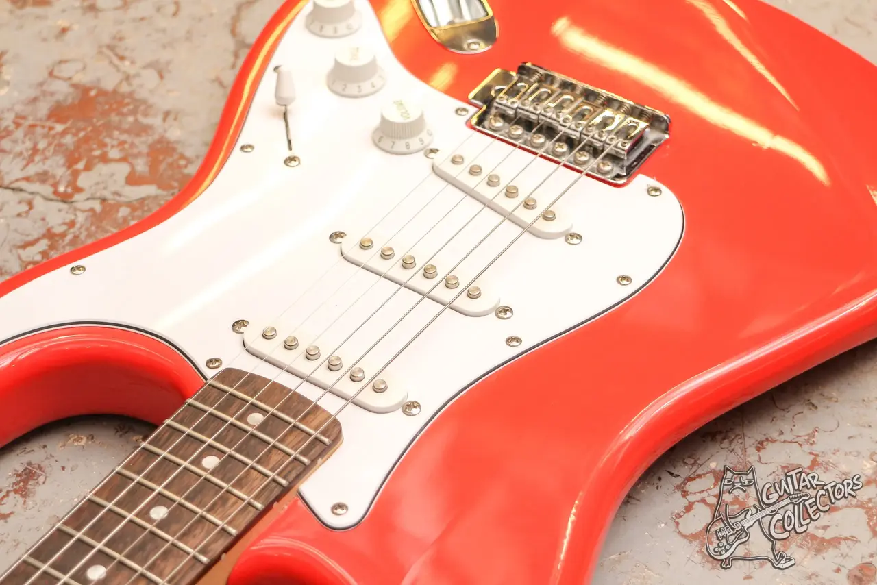 Ольховый скваер в ярком интересном цвете с большой головой, тремя синглами и шестиболтовым тремоло. Инструмент в хорошем техническом состоянии, все исправно. По косметике без сколов, только небольшие коцки и потертсоти по лкп.