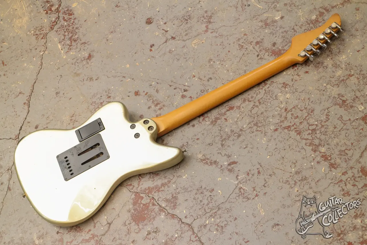 Японский оффсет с парой хамбов, сустейнером и двухболтовым тремоло. Технически в порядке. лады с запасом, строй держит. Косметически имеются сколы и вмятинки по лкп. Сустейнер работает, но тонкие струны (1-3) не очень бодро раскачивает, толстые вполне нормально. Эта модель сустейнера также умеет работать как обычный хамбакер.