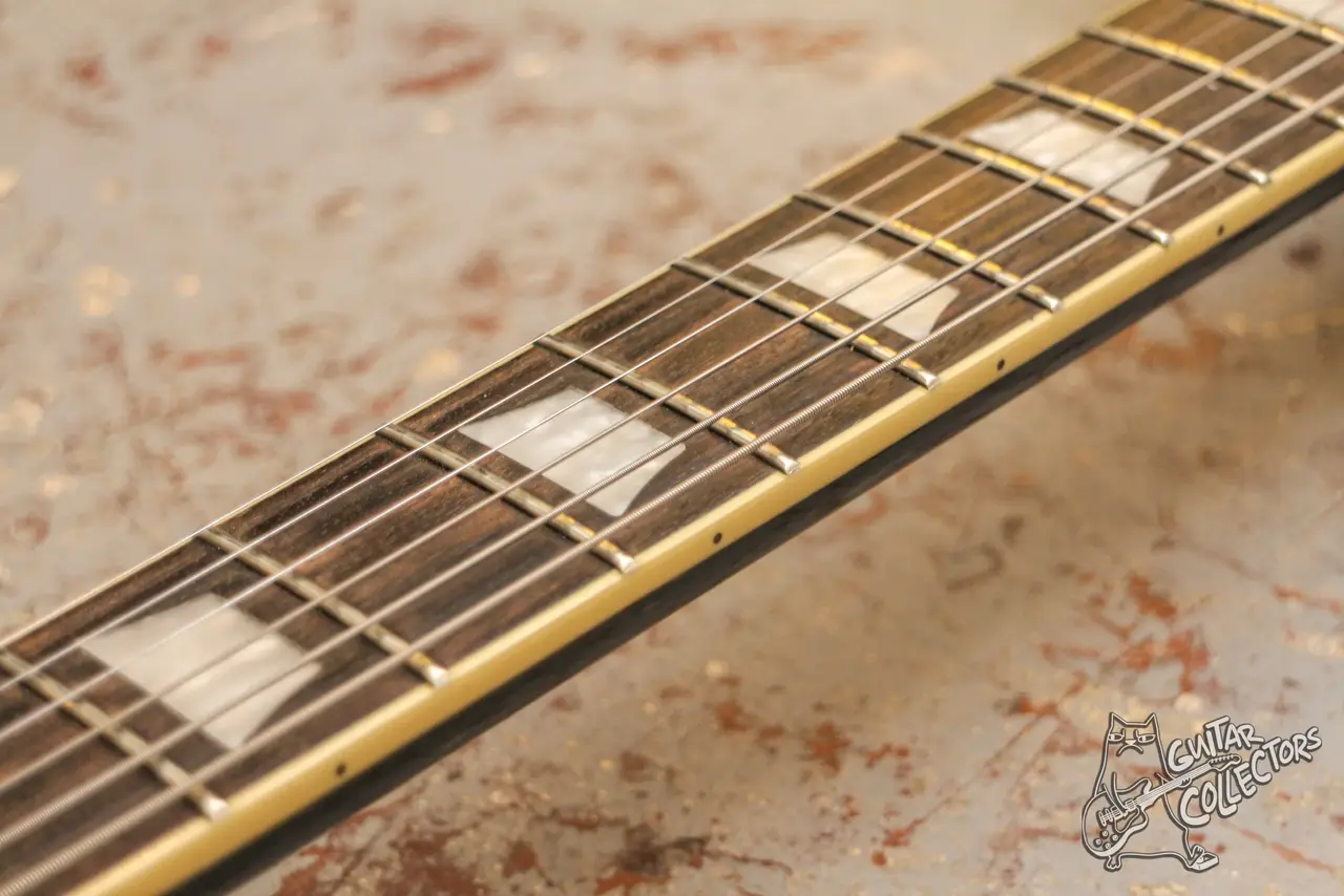 Черный стандарт из махагона с окантовкой и отсечкой на оба датчика. Технически инструмент в хорошем состоянии, все исправно. Косметически без серьезных повреждений и ремонтов, только потертости и царапинки по лкп. Датчики заменены на сет хамбов Fleor в черных крышках, сделана отсечка на оба датчика, push-pull в ручке громкости.