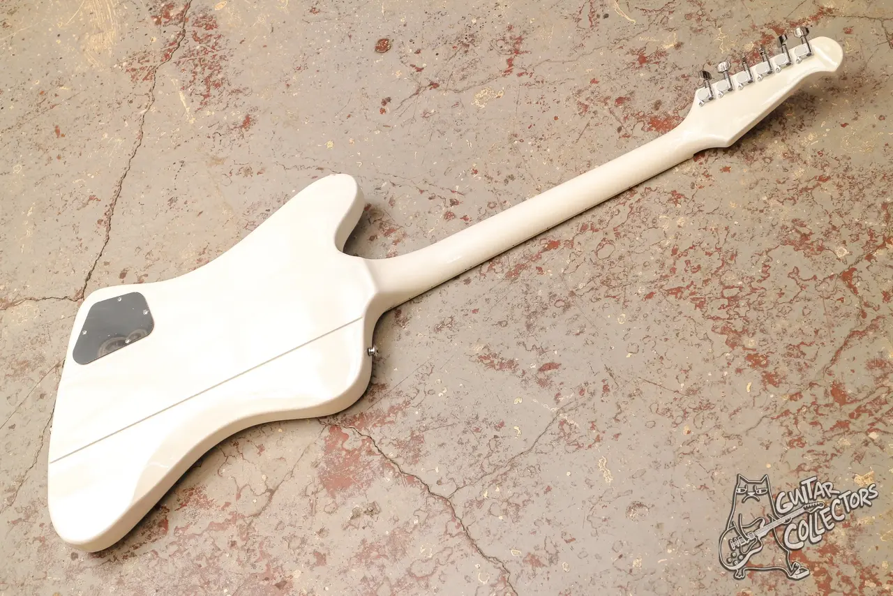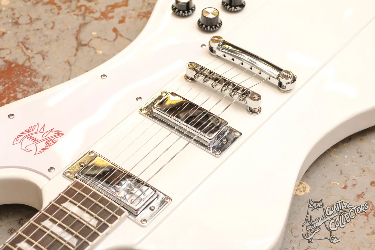 Белая птица с кантом по грифу, вклееным грифом и сетом минихамбакеров. Копия гибсона. Инструмент новый, в эксплуатации не был. Технически в полном порядке, сборка у данного экземпляра адекватная, по грифу проблем нет, гриф ровный, деревяшка на накладке из нормального палисандра, лады закатаны хорошо. Вложений гитара не требует, звучит, строй держит.