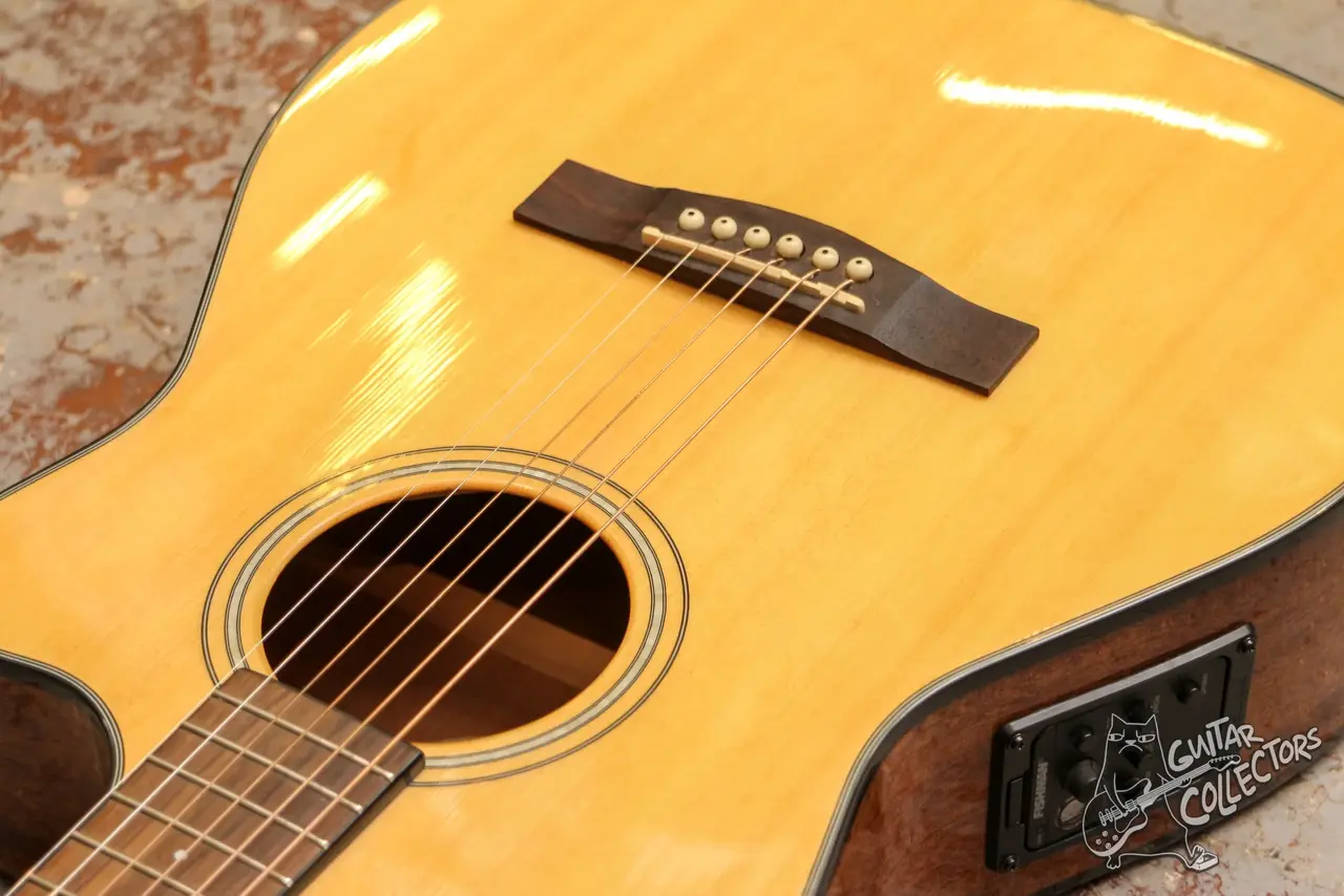 Электроакустическая фолк гитара с вырезом, топом из массива ели и предусилителем Fishman. Технически в порядке, гриф ровный, по ладам все звучит, анкер работает, строй держит. Косметически без серьезных сколов, только коцки и потертости по лкп.