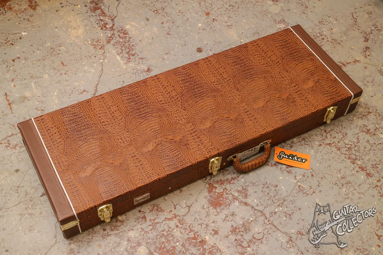 Сипатичный деревянный кейс с обивкой под змеиную кожу. Новый, в эксплуатации не был. Влезают страты, суперстраты, можн опоместить даже ЛП, но будет задевать дно головой.