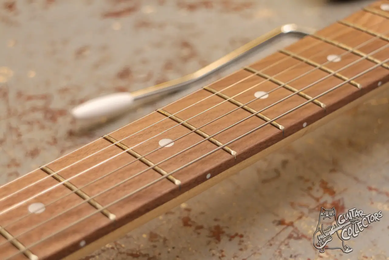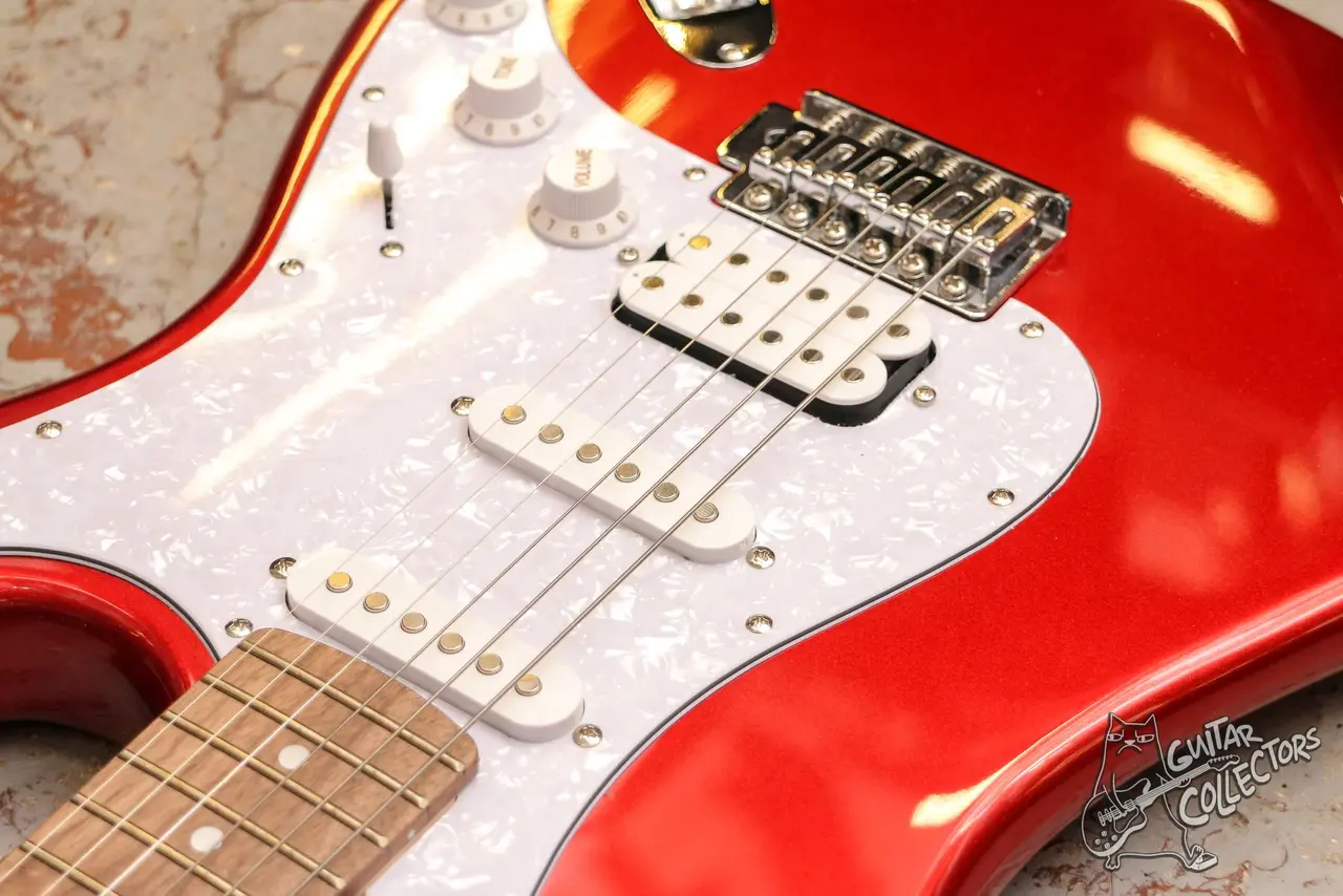 Яркий страт с хамбом в бридже. 22 ладами и шестиболтовым тремоло. Инструмент в эксплуатации не был, все звучит и строит. Удачный экземпляр по сборке, гриф ровный, анкер работает.