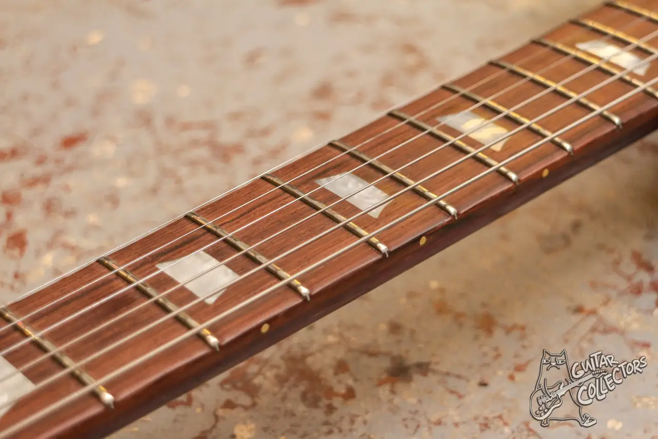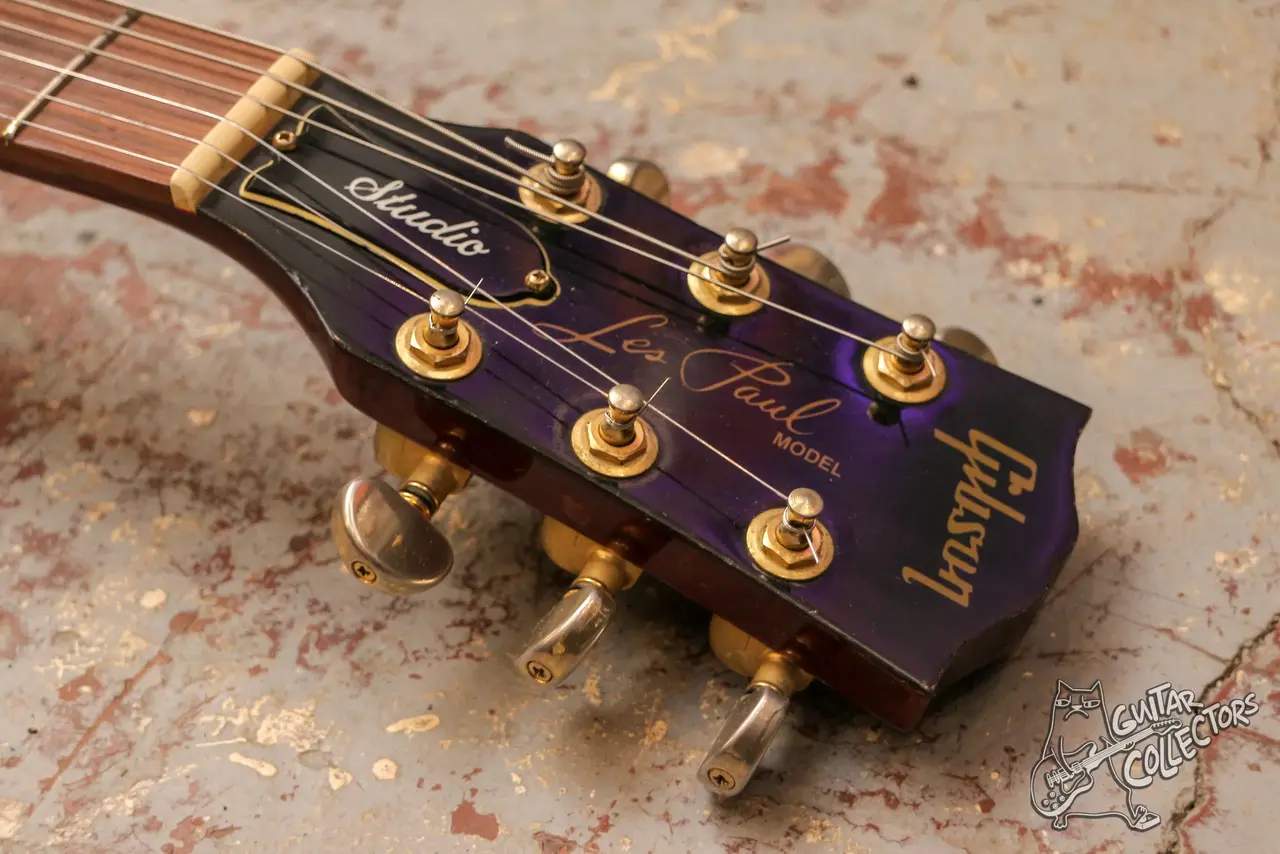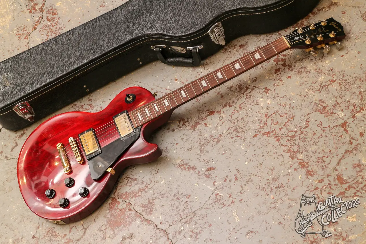 Редкий студио из самого начала 2000х без полостей и с нормальным слоем лака. Данная модель отличается от обычных Studio немного уменьшенной толщиной корпуса, и инкрустация на накладке чуть меньше, в остальном это все тот же тяжеленький LP с кленовым топом и без полостей. Все работает, все родное, технически никаких проблем. Ремонтов не было. По косметике без сколов, только коцки и потертости по лкп. В комплекте кейс rockcase.