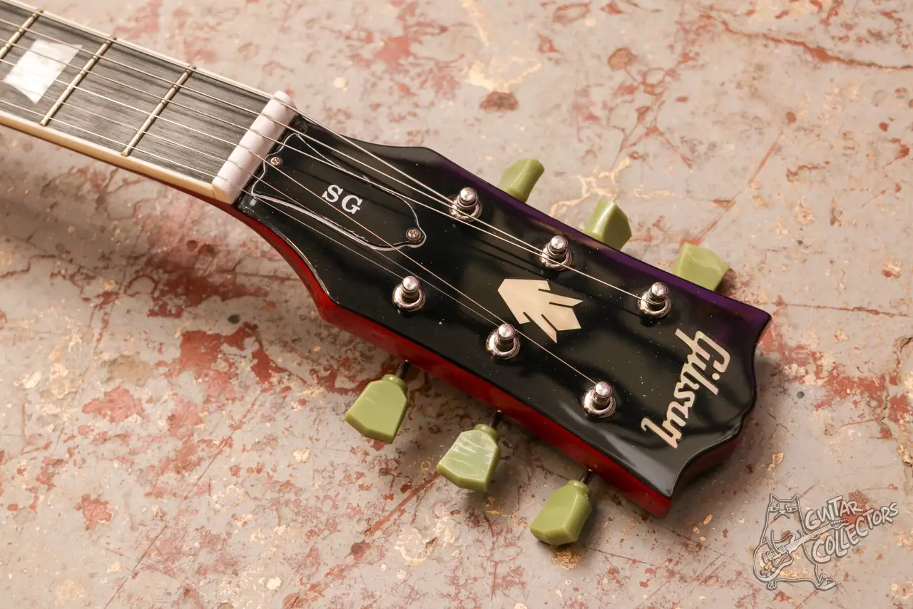 Яркий СГ стандарт с кантом по грифу. Копия гибсона. Инструмент новый, в эксплуатации не был. Технически в полном порядке. Вложений гитара не требует, звучит, строй держит.