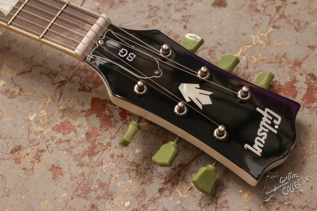 Белый СГ стандарт с кантом по грифу. Копия гибсона. Инструмент в эксплуатации не был. Технически в полном порядке, по грифу проблем нет. Вложений гитара не требует, звучит, строй держит.