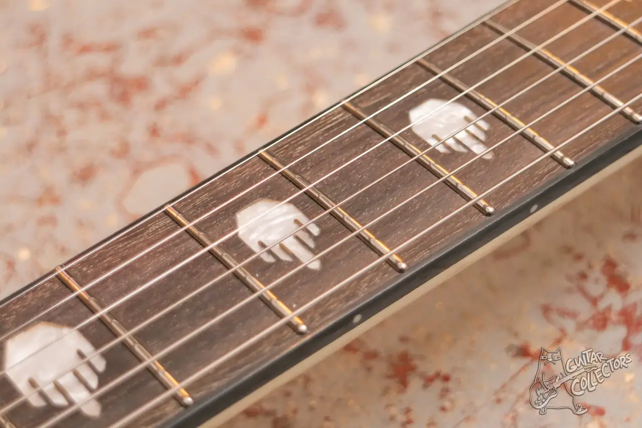 Белый эксплорер с вклеенным грифом. Копия гитaры ЕSР, фpoнтмeна Меtalliсa. Технически и косметически все преркасно, состояние нового инструмента, по сборке удачный экземпляр, все ровно, звучит и строит, даже торцы ладов сделаны “капелькой”. Датчики здесь установлены с хром крышками.