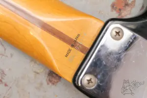 Классический Японец из начала 90х с цельнокленовым грифом и тремя яркими синглами. Технически в порядке, гриф ровный, все исправно. Косметически имеется сильный и стильный естественный релик, трещинки по лкп и коцки. но дерево без повреждений. Датчики заменены на сет альнико синглов Waaah pickups, сам пикгард родной, вся фурнитура также сток.