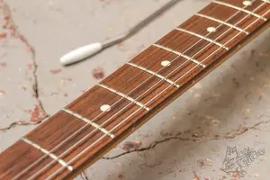 Японский ольховый страт с головой в цвет корпус, тремя яркими альнико синглами, локовыми колками, скошенной пяткой, стальными седлами на бридже и 22 ладами с системой установки CFS. Технически все прекрасно, звучит и строит. По косметике без серьезных повреждений, только коцки и потертости по лкп. Цвет у инструмента очень иентересный, он не черный, а темно зеленый и немного металлик, немного изумрудный в зависимости от освещения. В комплекте оригинальный плотный чехол.