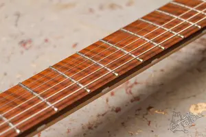 Великолепный суперстрат в шикарном цвете с накладкой из красивого куска печеного клена со струнами сквозь корпус и сетом мощных хамбов с уствновкой прям ов корпус без рамок. Стильный инструмент без излишеств с отличной сборкой, подбором материалов и вниманием к деталям. Состояние нового. Цвет на фото крайне сложно передать, в живую выглядит круче, он достаточно глубокий и темный, но при этом ярко переливается на свету.