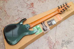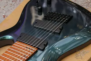 Мультимензурный восьмиструн с кленовой накладкой, струнами сквозь корпус и ярким переливающимся хамелеон цветом. Инструмент новый, в эксплуатации не был, все звучит и строит.