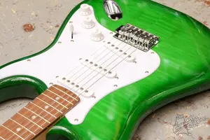 Классический страт на трех синглах с шестиболтовым тремоло и с красивым топом. Технически и косметически в полном порядке, гриф ровный, строй держит, никаких повреждений нет, все отстроено и звучит. Очень удачный экземпляр в своем ценовом диапазоне.