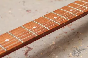 Матовый легкий LР. Технически все хорошо, звучит и работает, строй держит, по грифу очень удачный и ровный экземпляр, струны низко. Косметически имеются потертости и пара отверстий от винтов в районе головы, но без серьезных повреждений. Крашка анкера не родная, в остальном все сток.