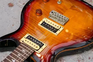 Симпатичный и легкий корейский даблкат из махагона с тремоло бриджем, красивым фигурным топом и птичками на накладке. Технически все сток, звучит и строит. Косметически без сколов, только небольшие коцки и следы эксплуатации.