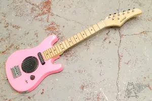 Маленький розовый страт со встроенным динамиком. Инструмент в состоянии нового, в эксплуатации не был.
