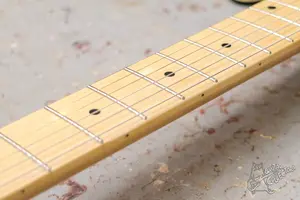 Телек с окантовкой, парой синглов и струнами сквозь корпус. Технически без проблем, гриф ровный, анкер работает. Датчики керамика, все звучит, вложений не требует. По косметике без вопреждений.