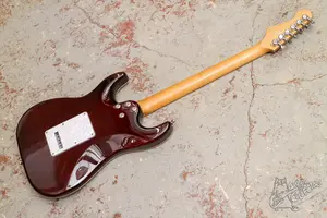 Модерновый страт с красивым кленовым топом, кленовой накладкой, хамбом в бридже, двухболтовым тремоло и локовыми колками. Состояние хорошее, в эксплуатации был не много, все звучит и работает, повреждений не наблюдается.