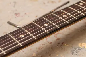 Подписная модель Стива Вая. Шикарный японец с текстурным матовым покрытием и ультратонким профилем грифа Super Wizard. Технически в прекрасном состоянии, все строит и звучит, струны низко. В эксплуатации был много, но очень бережно, повреждений нет, только потертости и небольшие коцки. Флойд заменен на свежий надежный Gotoh 1996t, пикгард заменен на черный, так как родной зеркальный потрескался от времени. Датчики также не родные, стоит сет Ibanez V7 S1 V8 и бриджевый хамб подвергся моддингу в виде замены магнитов с альнико на керамику для более мощного выхлопа. Топ лок так же стоит новый с креплением на саморезах, так что родные отверстия от винтов топ лока были заделаны. Да. инструмент не в стоке по обвесу, но деревяшка здесь в хорошем состоянии, лады с запасом и флойд бодр и свеж, так что в целом это надежная шред машина готовая разрывать стадионы твоими соляками.