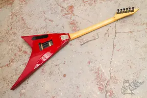 Яркая японская стрела с надежным флойдом Gotoh, HSH сетом адекватных датчиков, ольховым корпусом с фигурным топом и кленовой накладкой. Подписная модель Panther из Cycle. Техничсеки все хорошо, гриф ровный, струны низко, лады с запасом. По косметике без сколов, даже рога целые, только потретсоти и царапинки по лкп. Распайка сделана на 3-х поз переключатель и потенциометр громкости пуш-пулл, который включает сингл. Датчики заменены на fokin brown horse в неке, tesla opus 4 в бридже, и в мидле сигл belcat. Флойд стоит свежий и надежный Gotoh 1996t.