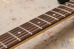 Cкваер c большой головой, тремя синглами и шестиболтовым тремоло. Инструмент в хорошем техническом состоянии, все исправно, гриф ровный, лады с запасом. По косметике без сколов, только потертсоти и следы эксплуатации. Распайка изменена на одну громкость и один тон, чтобы ручка громкости не мешала при игре. Это редкая версия аффинити страта, которая продавалась только в комплекте с комбиком. Все родное кроме колков. Маленький свитч включает нековый датчик, то есть в нековой позиции переключатля датчиков он работает как киллсвитч, а в других добавляет нековый сингл.