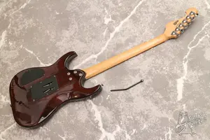 Корейский ольховый суперстрат из середины нулевых с надежным немецким флойдом, парой хамбов, удобным тонким грифом и фигурным топом. Технически в порядке, гриф ровный, лады с запасом, в эксплуатации инструмент был не много, от времени есть коррозия на винтах флойда, но сам флойд не уставший, износа практически нет. По грифу есть нюанс, имеется небольшой равномерный винт, он не влияет на высоту струн так как без горбов и впадин, все отстроено и звучит, и с учетом возраста в 20 лет дальше винт уже не пойдет, момент исключительно косметический, никакой надобности исправлять его нет.
