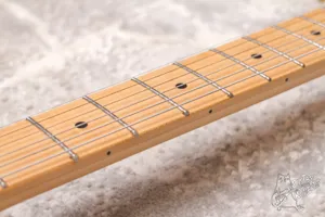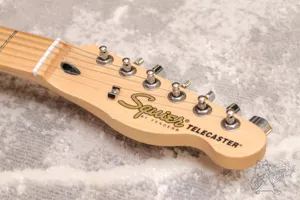 Телек с парой синглов, кленовой накладкой и струнами сквозь корпус. Датчики керамика, все звучит, вложений не требует. По косметике пара вмятинок по лкп. По сборке это тоже самое, что и копии фендеров, но с деколью скваер на голове.