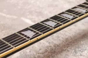 Редкий старенький LP с вклеенным грифом, окантовкой и в хорошем состоянии для своего возраста. Инструмент по настоящему винтажный и приятный, с хорошей сборкой и цельным топом. Технически в прекрасном состоянии, гриф ровный, струны низко, электроника исправна, не фонит, была заэкранирована. Косметически только коцки по лкп, без серьезных повреждений. Колки заменены на локовые неопознанные.