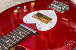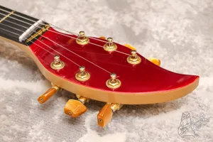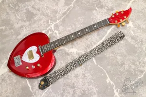 Яркая красная гитара-сердце, создана чтобы разбивать сердца. Инструмент был доработан. Прошел шлифовку и торцовку ладов, теперь по ладам все звучит, струны низко. Колки заменены на ibanez, на хамбакер установлена золотая крышка, ручки также заменены на золотые. В комплекте хороший, практически новый ремень (отдельно у нас стоит 2200р) и стреплоки Schaller (у нас такие по 1500р). Теперь это вполне себе адекватный и стильный играбельный инструмент.