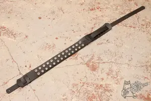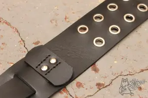 Гитарный ремень из натуральной кожи растительного дубления. Цвет чёрный, с люверсами. Ширина полосы 7 см, толщина ремня 4 мм
